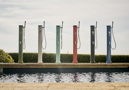 - Kompakte und elegante Solardusche aus pulverbeschichtetem Aluminium